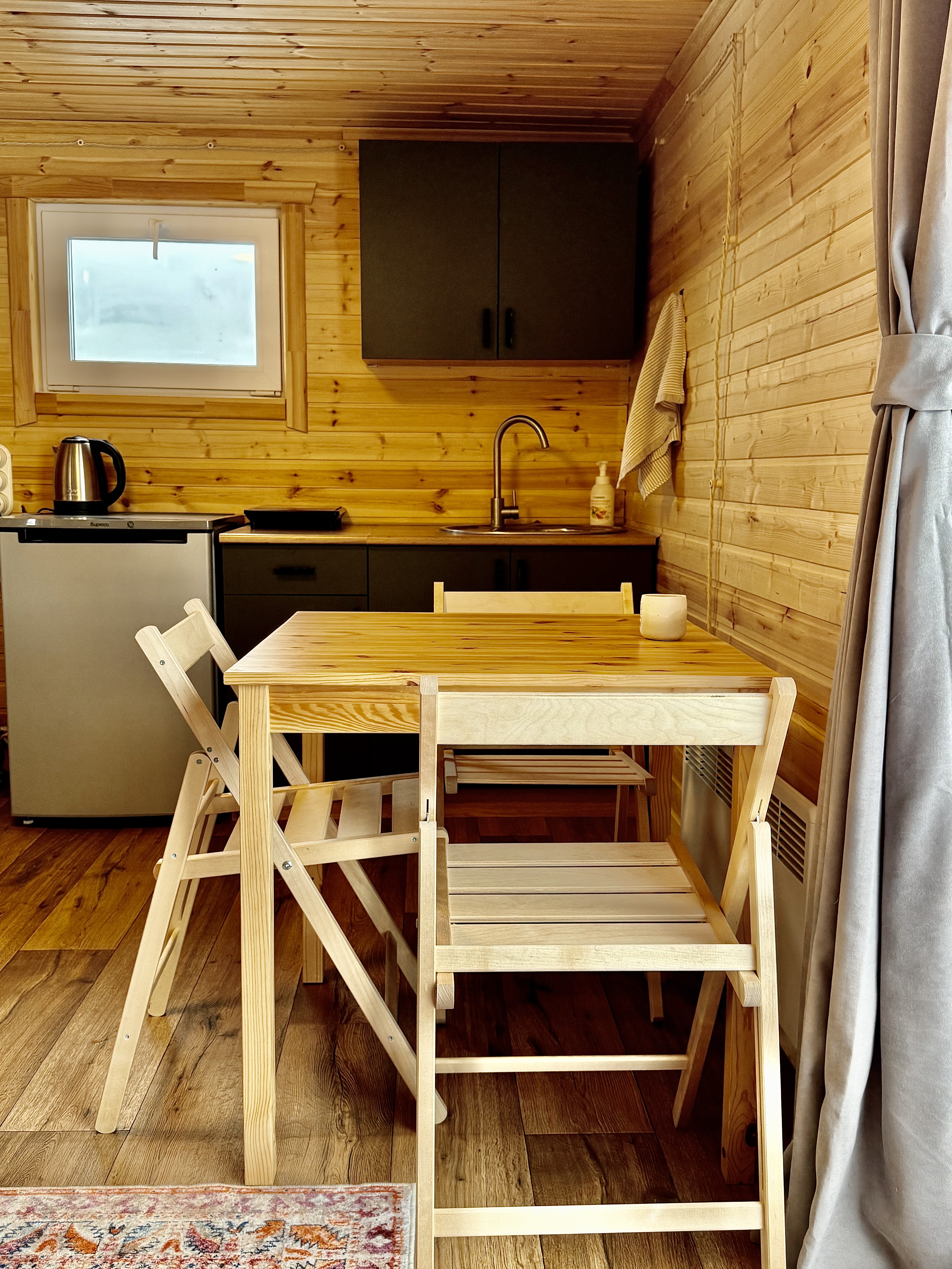 Каждый дом оснащен мини-кухней, в которой можно приготовить любимые блюда.